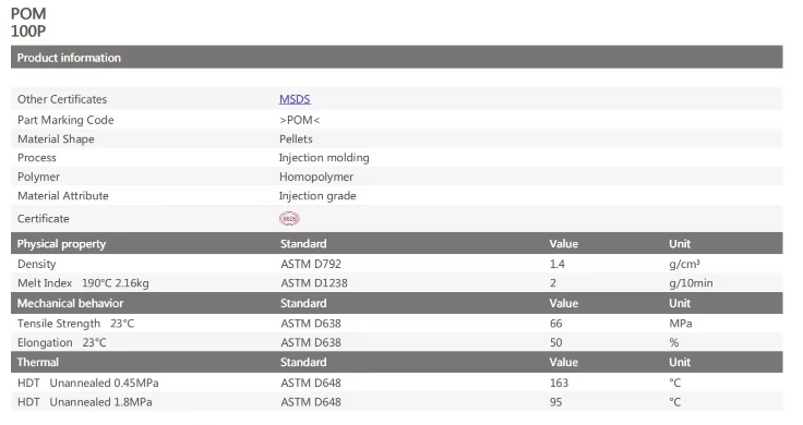 | POM 100P High Toughness and High Strength Auto Parts Agent Distribution |